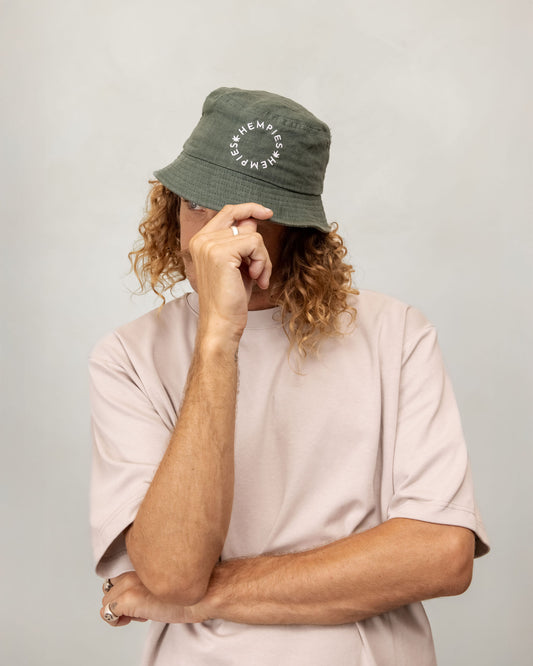 Hempies Unisex Hemp Bucket Hat in Olive Green | Sustainable, UV Resistant, Breathable