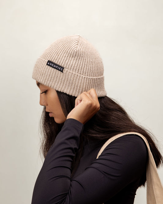 Hempies Beige Hemp & Organic Cotton Beanie | Warm, Comfortable, Sustainable
